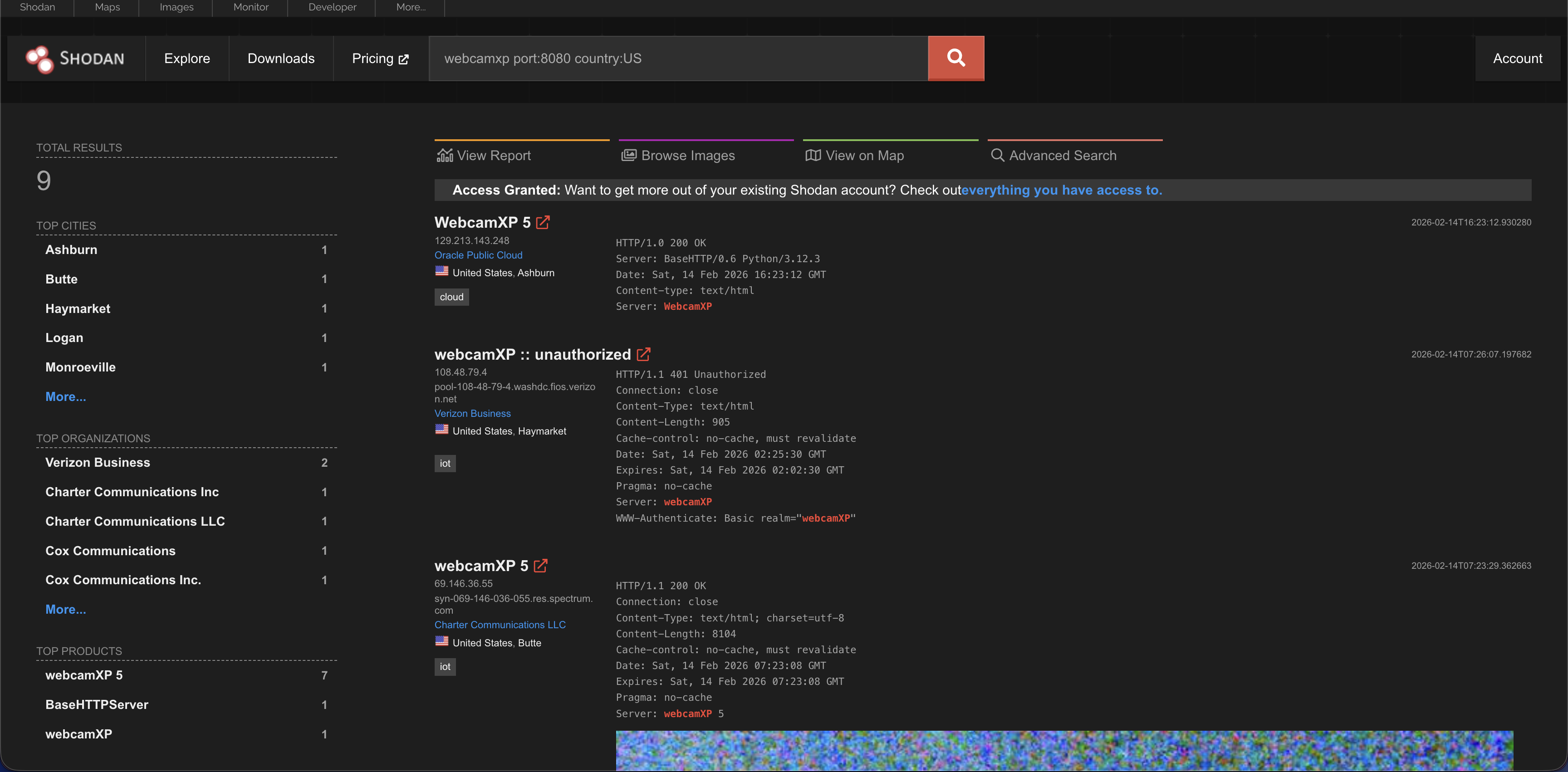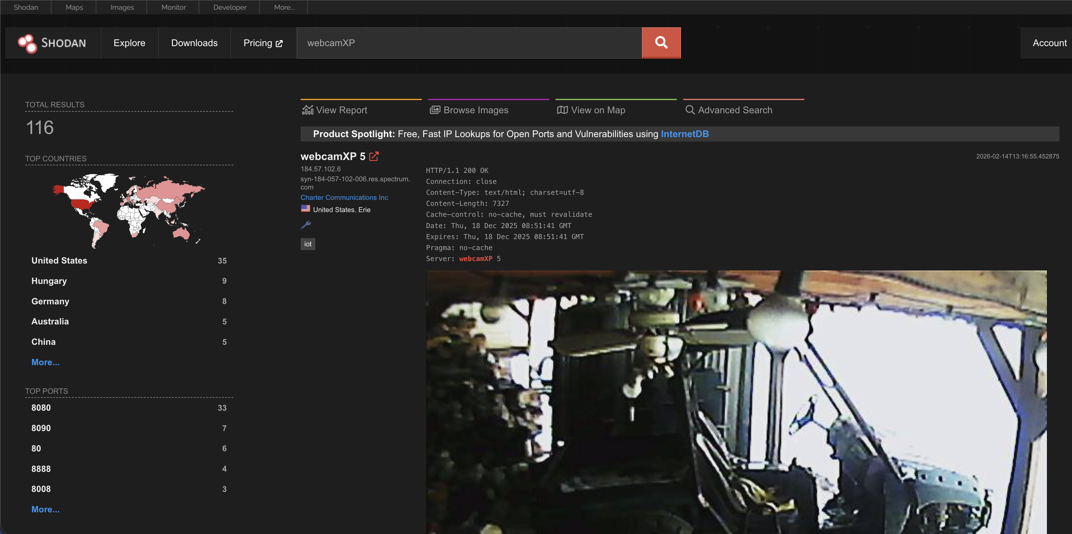 Type webcamXP or netcam. This is a popular search to find publicly accessible webcams. Sometimes, these cameras have no password. For example, we searched for webcamXP