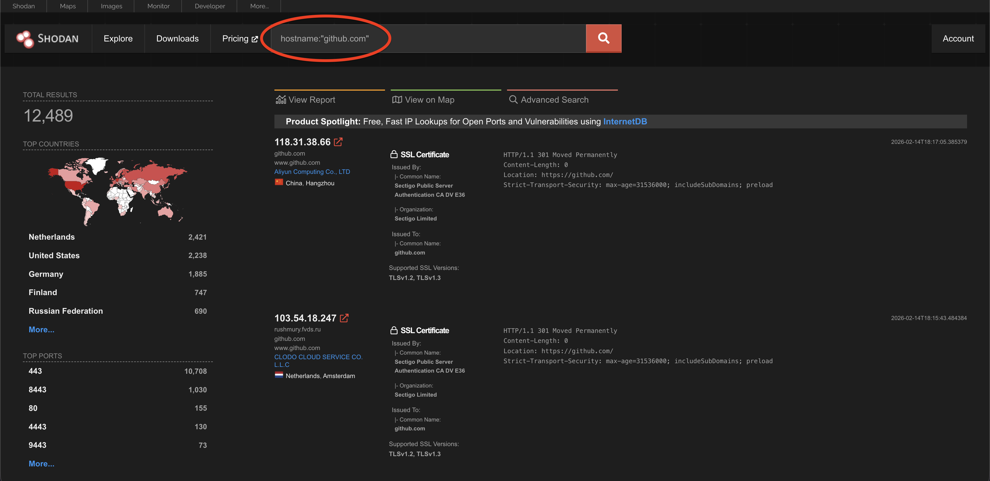 Using Shodan, it is possible to enumerate all publicly accessible assets tied to a specific organization or IP address range. This helps in understanding how much of an organization’s infrastructure is exposed to the internet and where potential security gaps may exist.