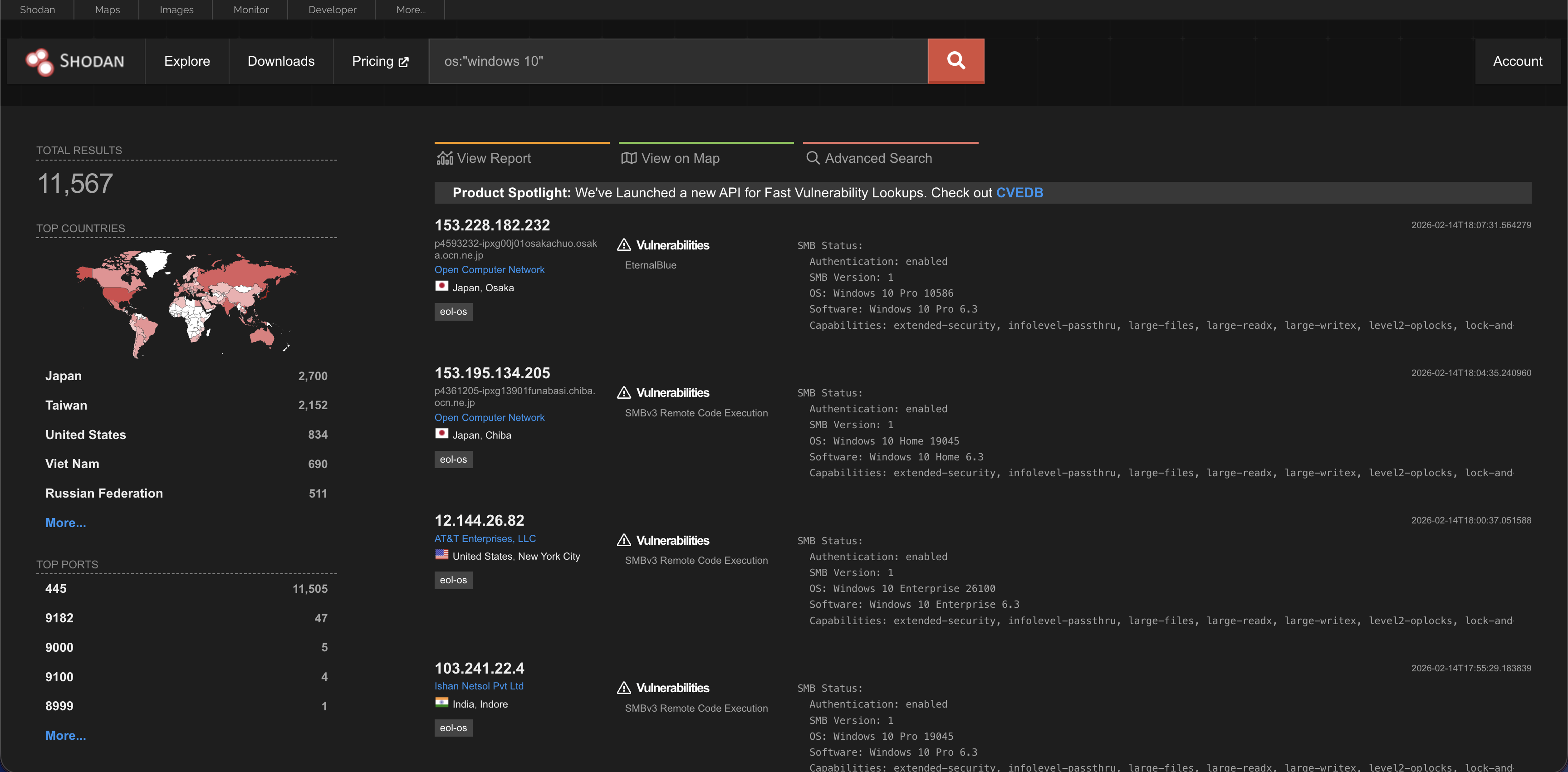Shodan enables users to discover systems running software versions that are already known to have security weaknesses. This functionality is particularly useful for security professionals who want to detect and address risks before they are exploited.