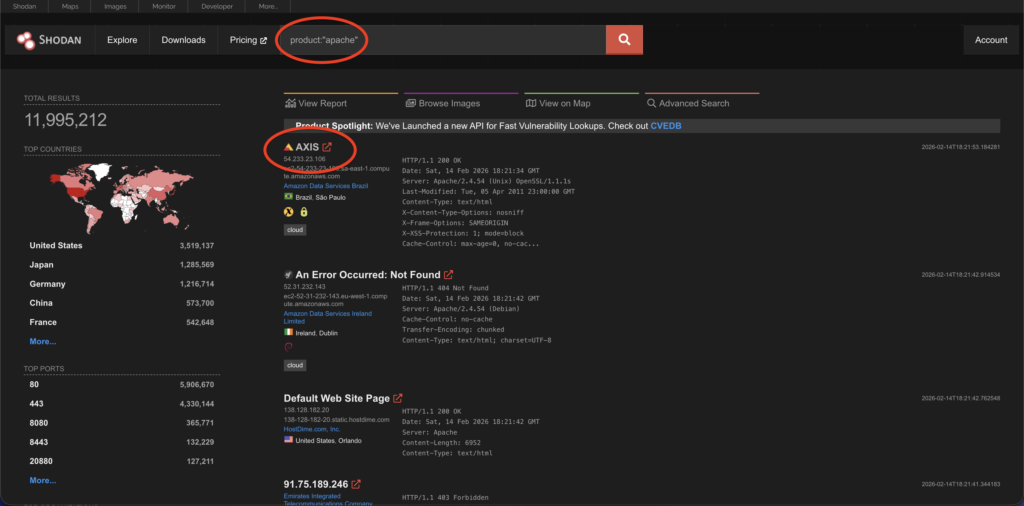This searches for a specific software product. For example: product:Apache. Let us explore this a bit.