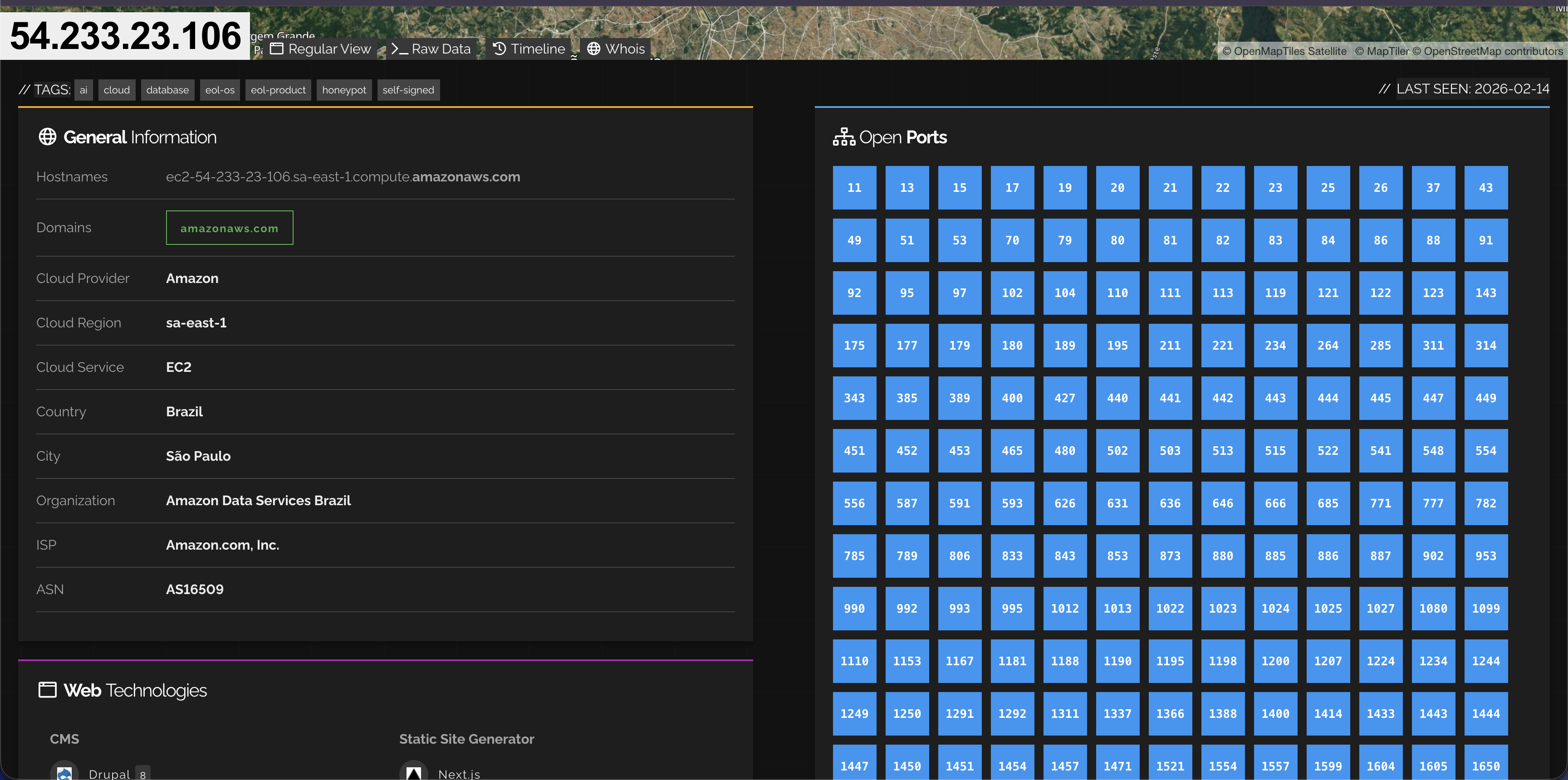 If we go a bit further, we see multiple open ports here which is concerning. This looks like an amazon ec2 instance.