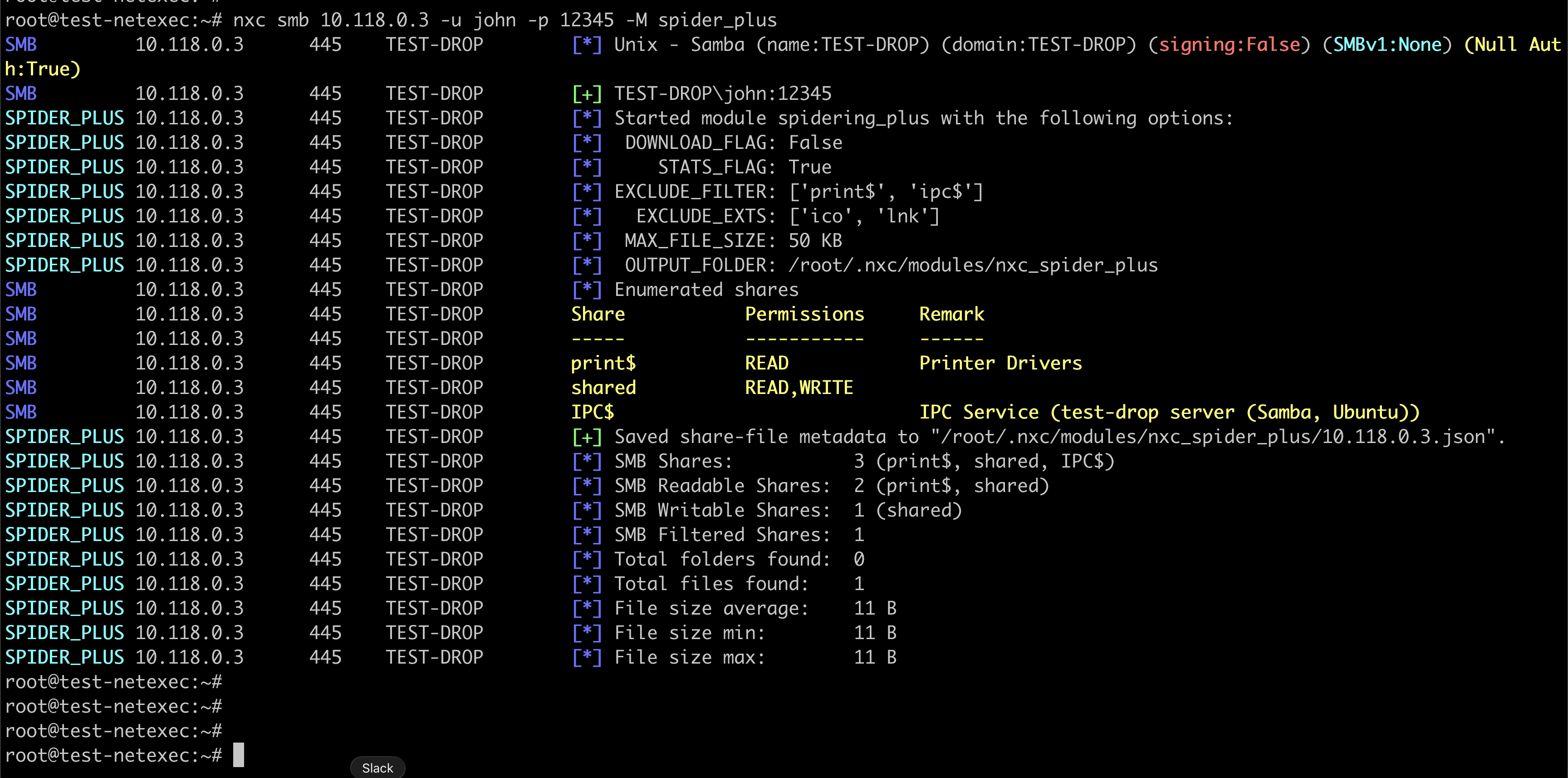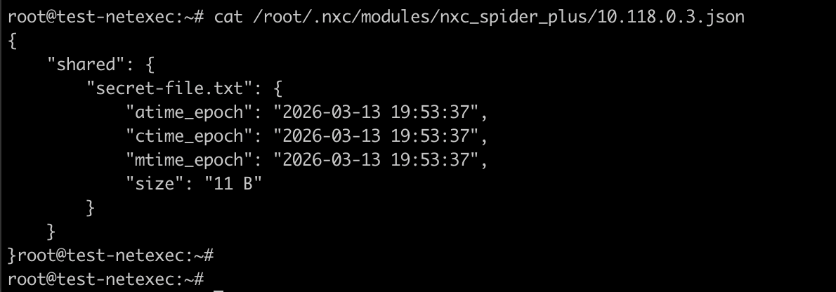 On checking the result file at “/root/.nxc/modules/nxc_spider_plus/10.118.0.3.json” – we see following file details