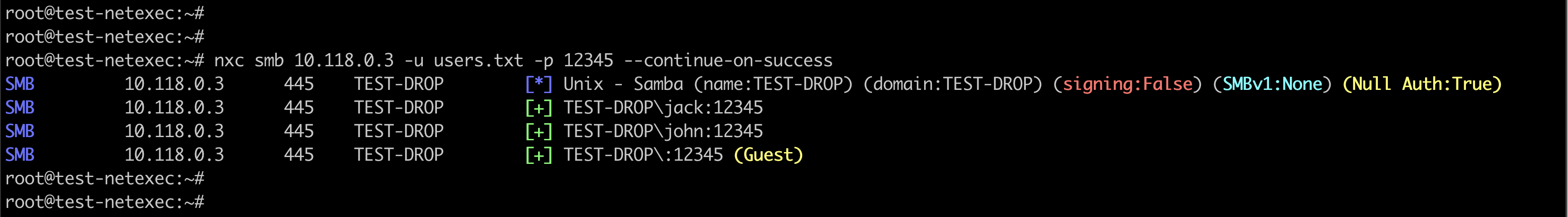 But this gave only one user. That is because the command stops right after it gets a successful login. To continue, we need to use a flag