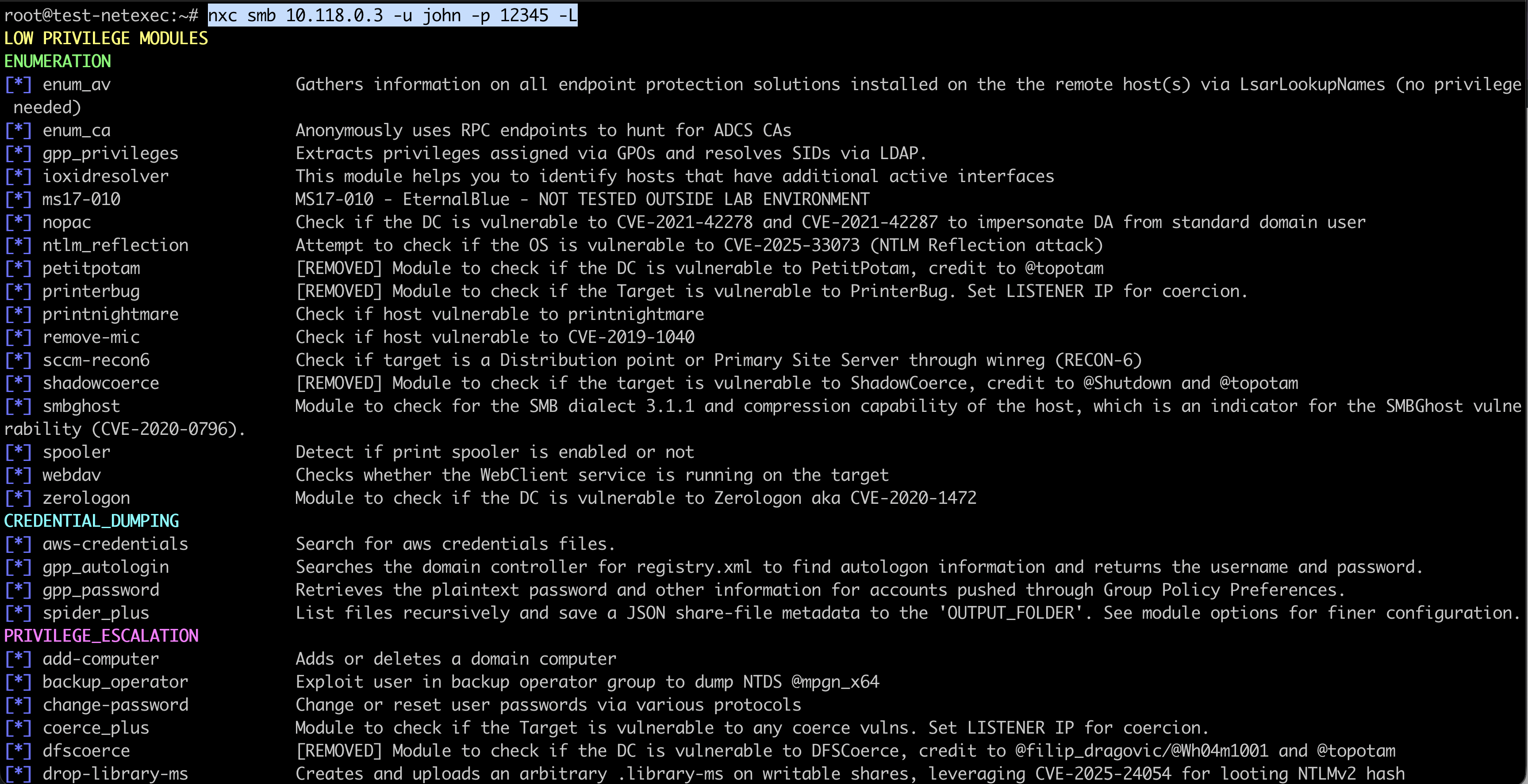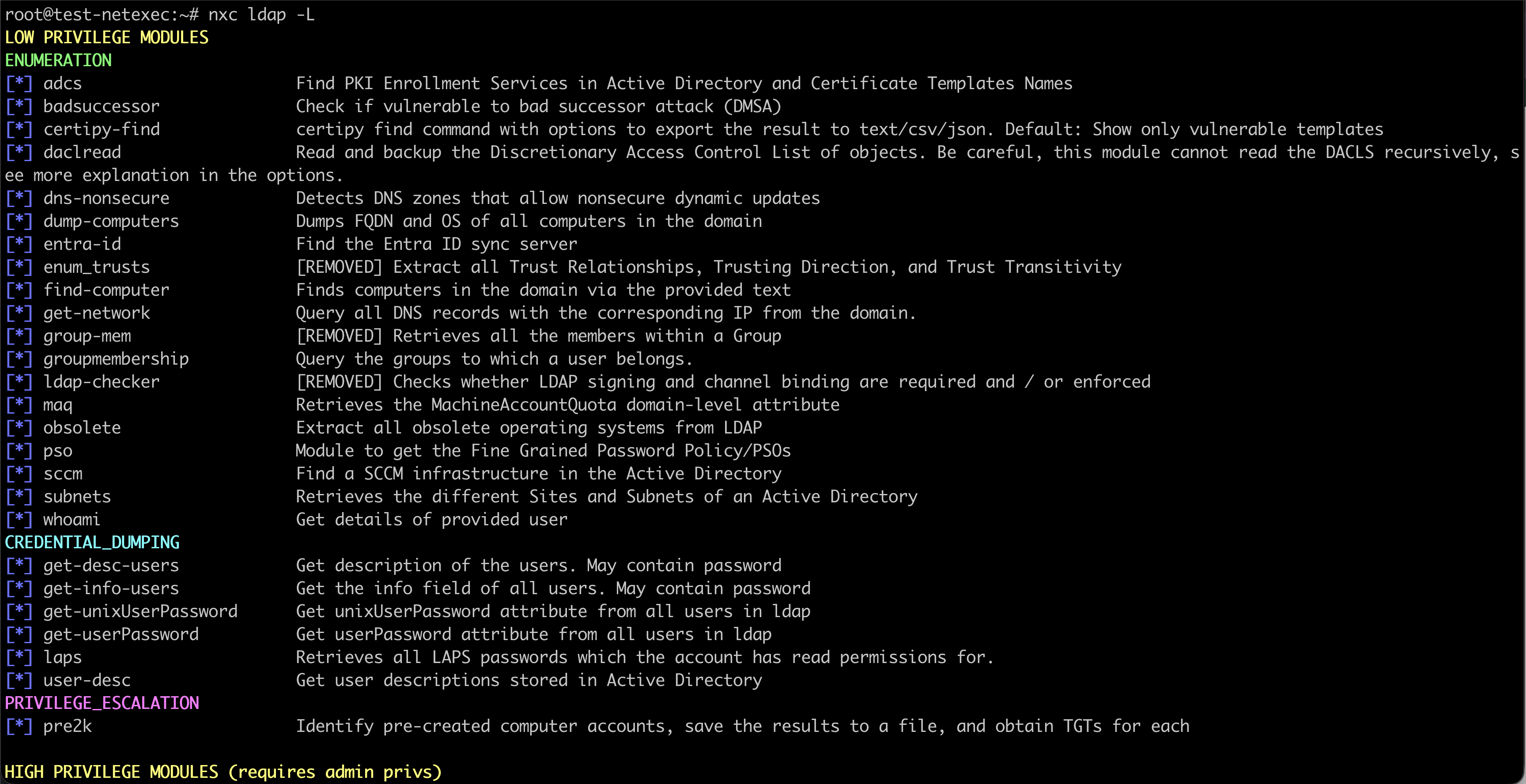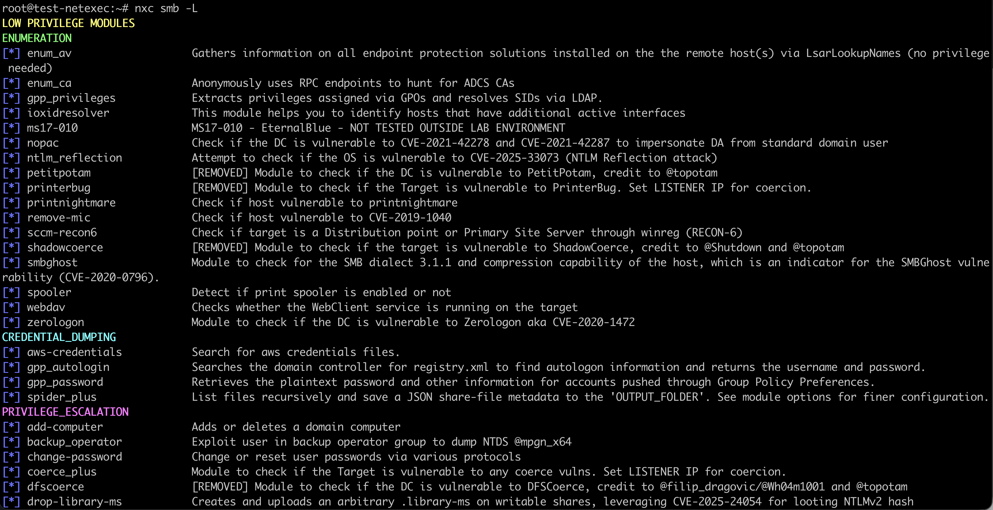 Modules add special functions to NetExec. Each service has its own modules.