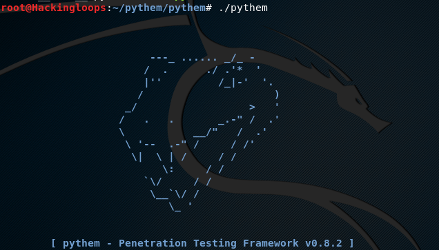 The following command opens the Pythem interface in the terminal.