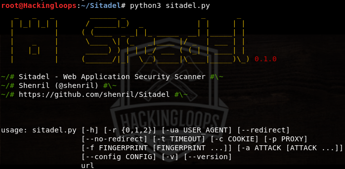 After installing Sitadel, the tool can be launched from the terminal with the help of the following command.